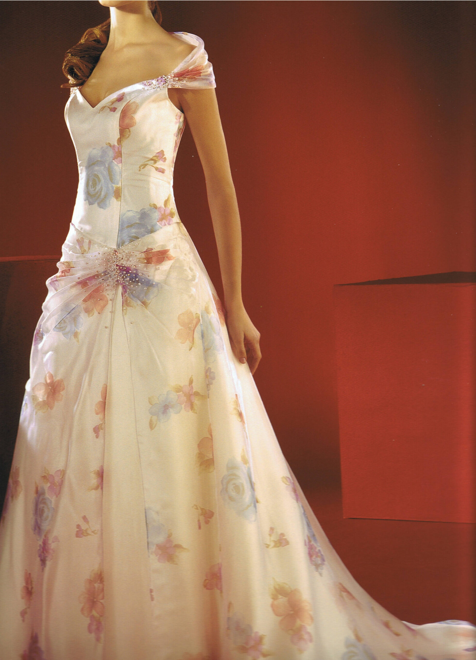 El vestido de novia presenta aplicaciones de encaje veneciano escarchado sobre satén elástico con cola festoneada recortada